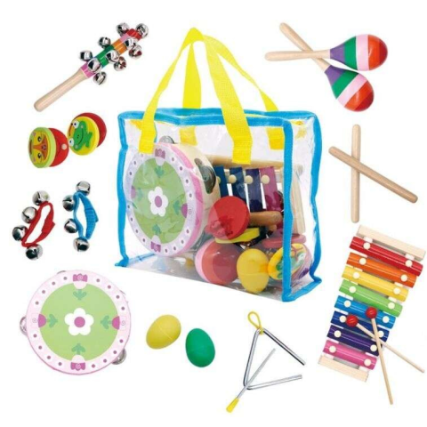 14 db-os Fa Hangszer Készlet Hordozótáskával: Fedezd fel a zene varázsát! 🎶 Ez a 14 darabos fa hangszerkészlet tökéletes ajándék minden kis zenésznek! A készlet változatos hangszereket tartalmaz, melyekkel a gyerekek önfeledten játszhatnak és fejles...