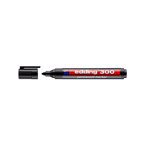 Marker - tartós, újratölthető, gyorsan száradó, vízálló, hegy formája kerek, 3 mm vonalvastagság, kerek markolat, A szuper EDDING 300 tartós filctoll, fekete termék legfontosabb jellemzői A kedvelt EDDING állandó marker egy sokoldalúan kihasználható íróeszköz Kerek alak, hogy egyszerű legyen kézben tartani A filc