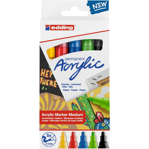 EDDING 5100/5 M Akril Marker - Alap színek (5db / csomag) filctoll, marker termékleírás
