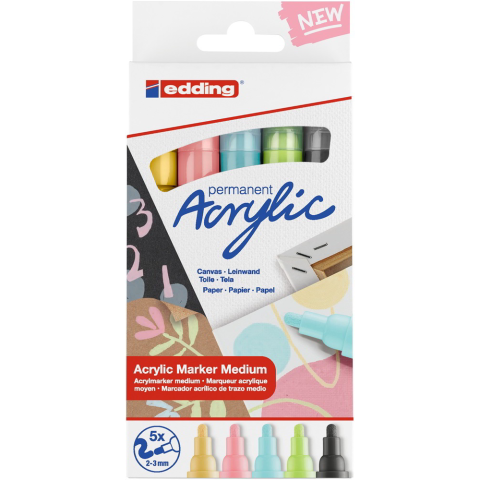 EDDING 5100/5 M Akril Marker - Pasztel színek (5db / csomag) (7580245026) filctoll, marker termékleírás