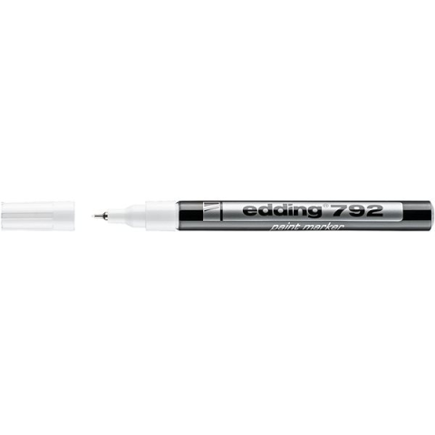Marker - lakk, tartós, használható porcelán, papír, fa, üveg, műanyag és fém felületeken, gyorsan száradó, vízálló, hegy formája kerek, 0,8 mm vonalvastagság, kerek markolat, A jól kihasználható EDDING 792 - fehér termék leglényegesebb előnyei A nagyszerű EDDING tartós marker bármilyen alkalomra használható Kerek alak a tökéletes kezelés érdekében Használható: porcelán, pa