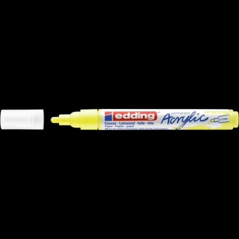 Akril marker világos vagy sötét felületekre történő festéshez, ideális olyan anyagokhoz, mint a vászon vagy a festőpapír. - A kerekített csúcs vonalvastagsága 2-3 mm. - A kiváló minőségű, pigmentált, vízbázisú akrilfesték száradás után rendkívül tartós, átlátszatlan, fényálló és szagtalan. - A neon sárga szín áttetsző. Megfelelő pótcsúcsok (edding 5100 pótcsúcsok) elérhetők.- 26 féle színválasztékban elérhető- Keresse a további változatokat