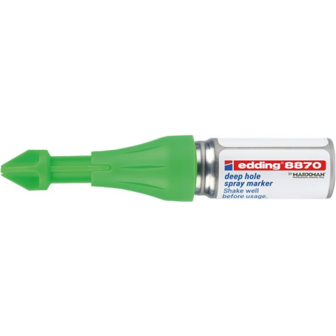 Furatjelölő-marker spray, EDDING 8870, neon zöld Folyékony kréta spray szabadalmaztatott pumpás mechanizmussal nem permanens jelölésre nehezen hozzáférhető helyeken, szinte minden anyagon. -egyedi formájú fúvókája 50 mm mélységű és 3-13 mm átmérőjű