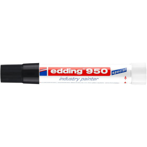 Jelölő marker, 10 mm, kúpos, EDDING 950, fekete - rendkívül permanens, kiválóan fedő festékpaszta - vonalvastagság: kb. 10 mm - főként durva felületek, szennyezett anyagok vagy rozsdás fémek feliratozására alkalmas - színtartó, száradás után törlés-, é