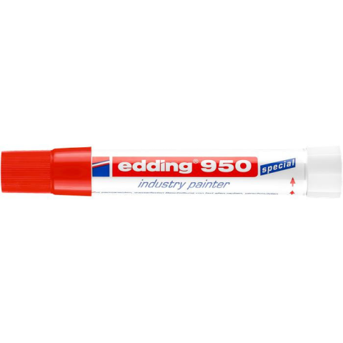 Jelölő marker, 10 mm, kúpos, EDDING 950, piros - rendkívül permanens, kiválóan fedő festékpaszta - vonalvastagság: kb. 10 mm - főként durva felületek, szennyezett anyagok vagy rozsdás fémek feliratozására alkalmas - színtartó, száradás után törlés-, és