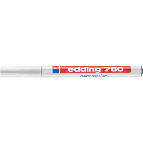 Lakkmarker, 0,8 mm, EDDING 780, fehér lakk- és dekorációs marker kerekített csúcs, fémtest, permanent, lakkszerűen fedő festékkel töltve üveg, porcelán, műanyag, fém illetve szinte minden felület feliratozására, jelölésére alkalmas, különösen ajánlo
