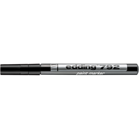 LAKKMARKER 0,8MM, KEREK EDDING 792 FEKETE Üveg, porcelán, műanyag, fém illetve szinte minden felület feliratozására, jelölésére alkalmas, különösen ajánlott szennyezett felületekhez.Lakk- és dekorációs marker. Kerekített csúcs, műanyag test, permanent,