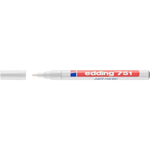 Lakkmarker, 1-2 mm, EDDING 751, fehér - üveg, porcelán, műanyag, fém, illetve szinte minden felület feliratozására, jelölésére alkalmas - különösen ajánlott szennyezett felületekhez - lakk- és dekorációs fémtestű marker - kerekített csúcs - fém test -