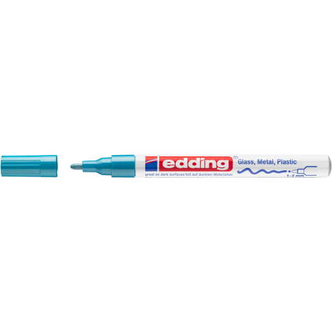Üveg, porcelán, műanyag, fém illetve szinte minden felület feliratozására, jelölésére alkalmas, különösen ajánlott szennyezett felületekhez, lakk- és dekorációs fémtestű marker. Kerekített csúcs, fémtest, permanent, lakkszerűen fedő festékkel töltve. Gyorsan száradó festék, írásképe törlés- és vízálló, magas fény- hő- és törlésálló. Festékadagolása egyenletes, szelep vezérli, pótcsúcsolható (EDDDING 751 N írócsúcs). Vonalvastagság: 1-2 mm.
