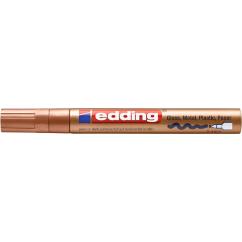 Lakkmarker, 2-4 mm, EDDING 750, vörösréz - üveg, porcelán, műanyag, fém, illetve szinte minden felület feliratozására, jelölésére alkalmas - kerekített hegy - fém test - permanent, lakkszerűen fedő festékkel töltve - gyorsan száradó festék, írásképe tö
