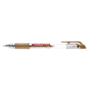 Átlátszó tolltestű, kényelmes gumírozott fogórésszel ellátott zselés toll. A kiegészítők (gumis fogórész, záródugó) színével megegyező írásszínek.