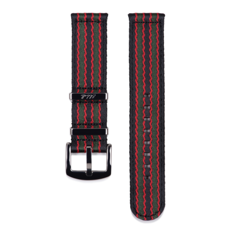 Edelwolle prémium kétrészes Nato óraszíj, fekete/piros/zöld, 22mm