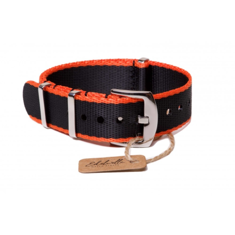 Edelwolle prémium Nato óraszíj, fekete/narancs, 22mm