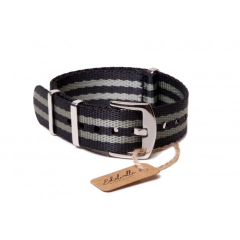 Edelwolle prémium Nato óraszíj, fekete/szürke, 20mm