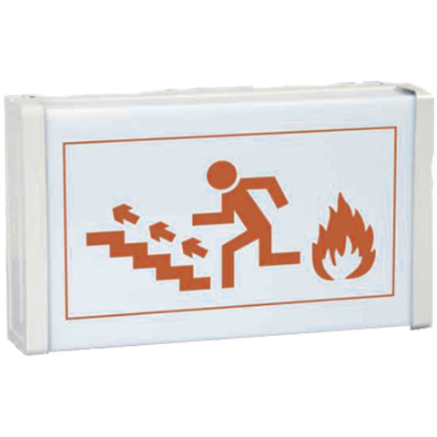 Menekülési és közlekedési útvonalat jelző világító tábla A jelzőtábla főbb jellemzői Szünetmentes tápellátást biztosító elektronika. Beépített 6 V / 600 mAh akkumulátor. Működési idő akkumulátorról: 45 perc. Energiatakarékos, fénycsöves megvilágítás. 4.3 lux fényerő. Nem átlátszó, opál plexilap, felirat nélkül. 12 db, különböző színű és nyomtatású jelző matrica (opcionális). Fémdoboz, fehér színben. Falra szerelhető ki