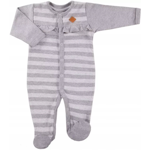 1 kép EEVI Pamut Ujjas Rugdalózó - Szürke/Világos Szürke Csíkos Fodros
