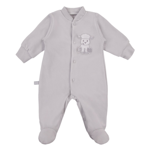 1 kép EEVI Plüss hosszú ujjú rugdalozó - Szürke Bárány hímzéssel 68
