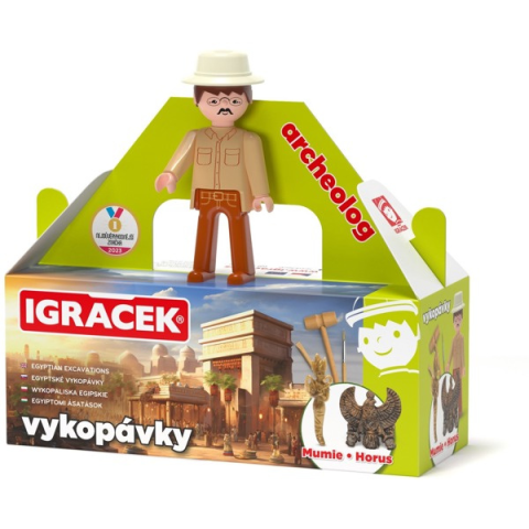 Kísérletezős játék - ajánlott 5 éves kortól, magassága 8,5 cm The Efko Igráček Archaeologist set is ready for little enthusiastic archaeologists who are invited to discover the secrets of ancient Egypt. The children join Iggy and together dig up a mummy and a st