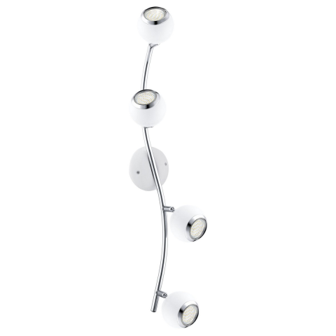 A Bimeda Eglo 31004 spot lámpa négy GU10 foglalattal rendelkezik, amelyekhez cserélhető fényforrások tartoznak, így a világítás testreszabható. A lámpatest acélból készült, fehér és króm színkombinációval, modern design stílusban. A mennyezeti lámpa telje