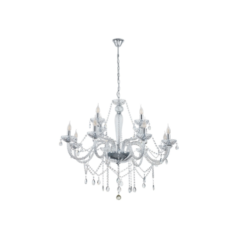 A Kristály csillár, 100 cm - Basilano Eglo 39102 egy klasszikus stílusú függesztett lámpatest, amelyet az Eglo márka gyárt. A lámpatest átmérője 1000 mm, magassága 840 mm, tömege 13,71 kg. A csillár 12 darab E14-es foglalattal rendelkezik, amelyekbe cseré
