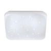 A FRANIA-S LED mennyezeti lámpa négyszögletes fehér műanyag világítópanellel, lekerekített sarkokkal és fehér fém hátlappal rendelkezik. Amikor a lámpa be van kapcsolva, a fény átvilágít a burkolaton, és olyan csillogó hatást kelt, mint a csillagok az éjs