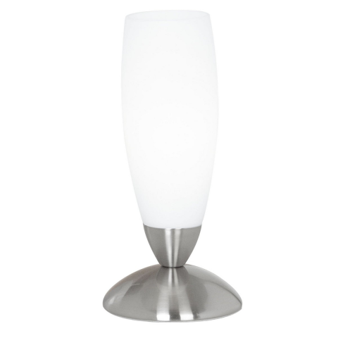 Az Eglo Slim 82305 kehely alakú asztali lámpa modern stílusával és letisztult formavilágával illeszkedik a korszerű otthoni vagy irodai környezetekhez. A lámpatest 22 cm magasságú, átmérője 7 cm, anyaga acél és üveg, színe fehér és ezüst. Egy darab E14 fo