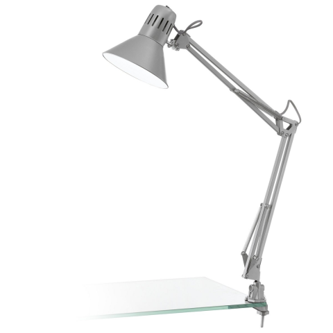 A Firmo Eglo 90874 felületre rögzíthető íróasztali lámpa modern megjelenésével és 73 cm hosszúságával ideális választás munkaterületek megvilágítására. Az ezüstszínű, acélból és műanyagból készült lámpatest egy darab E27 foglalattal rendelkezik, amelybe c
