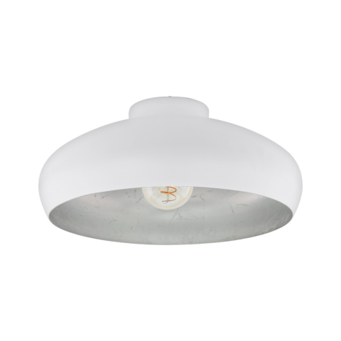 A Mogano Eglo 94548 mennyezeti lámpa vintage stílusú kialakítással és antikolt ezüst belsővel rendelkezik, amely elegáns megjelenést kölcsönöz bármely helyiségnek. A lámpatest fehér és ezüst színű acélból készült, 400 mm átmérővel és 170 mm magassággal. E