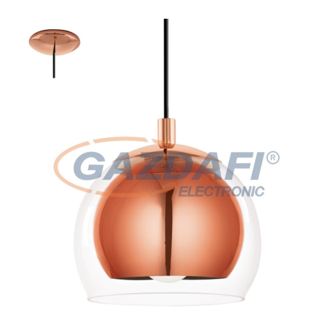 1 kép EGLO 94589 Függelék E27 40W réz/átlátszó bura/fekete Rocamar