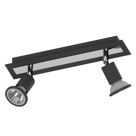A Sarria Eglo 94964 spot lámpa modern megjelenésével és funkcionális kialakításával ideális választás lakásvilágítási célokra. A lámpatest két darab GU10 foglalattal rendelkezik, amelyekbe cserélhető fényforrások helyezhetők el. A fekete és ezüst (króm) s