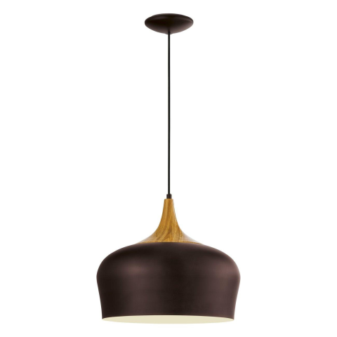 Az Obregon Eglo 95385 függesztett lámpa barna-fa színben, skandináv stílusú kialakítással készül, amelyet kiváló minőségű acél alapanyag jellemez. A lámpatest egy darab E27 foglalattal rendelkezik, amelybe cserélhető fényforrás illeszthető, így a fényáram