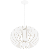 A Stellato Eglo 95607 függesztett lámpa egy modern stílusú világítótest, amelyet fehér és fekete színkombináció, valamint acél és fa anyaghasználat jellemez. A lámpatest 50 cm átmérőjű, maximális magassága 150 cm. Egy darab E27-es foglalattal rendelkezik,