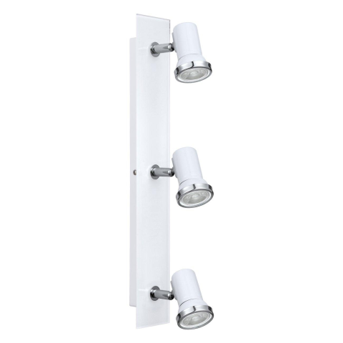 A Tamara Eglo 95994 spot lámpa három GU10 foglalattal rendelkezik, amelyekhez cserélhető fényforrások tartoznak. A lámpatest modern stílusú, anyaga acél és üveg, színe fehér-ezüst, amely elegáns megjelenést biztosít bármely helyiségben. A lámpa teljes hos