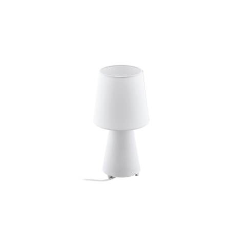 A Carpara Eglo 97121 textil éjjeli lámpa modern stílusával és 34 cm-es magasságával ideális választás lakásvilágítási feladatokra. A fehér színű, textil anyagból készült lámpatest két darab E14 foglalattal rendelkezik, így cserélhető fényforrásokkal haszn
