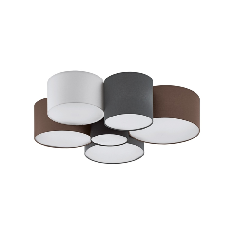 A Pastore Eglo 97838 mennyezeti lámpa hat E27 foglalattal rendelkezik, amelyek cserélhető fényforrást tesznek lehetővé. A lámpatest modern stílusú, barna, fehér és szürke színkombinációval, acél és textil anyaghasználattal készült. Átmérője 990 mm, magass