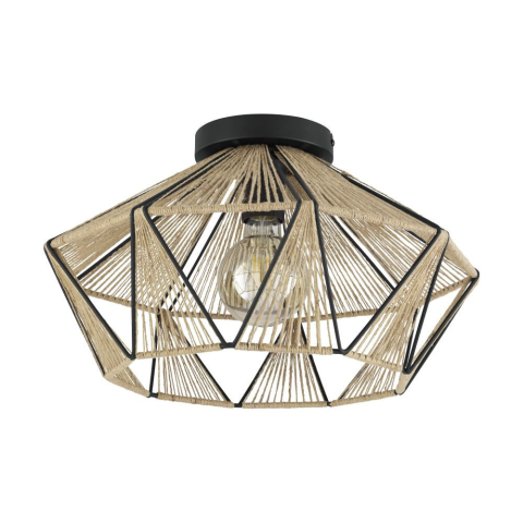 Az Adwickle Eglo 43775 mennyezeti lámpa modern etno stílusú kialakítással rendelkezik, amely fekete és barna színek kombinációjával emeli ki a belső terek karakterét. A lámpatest anyaga acél és textil, ezáltal tartós szerkezetet és esztétikus megjelenést