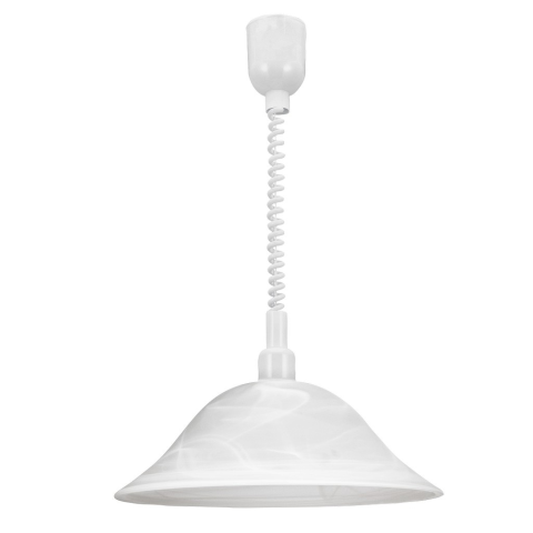 Az ALESSANDRA függőlámpa fehér alabástromüvegből készült kerek lámpabúra fehér műanyag tetőre függesztve. A függőlámpa magassága a spirálkábelnek köszönhetően állítható. A függőlámpa zökkenőmentesen illeszkedik a hagyományos házikó stílusú belső terekbe, ..