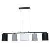 Az ALMEIDA 1 függőlámpa fekete színű fém előtetővel rendelkezik, amely egy hosszúkás, függő, azonos színű fém tartóval és öt szövet árnyalattal rendelkezik. Az öt árnyalat – két szürke, két fekete és egy fehér – tetszetős, kiegyensúlyozott megjelenést hoz..