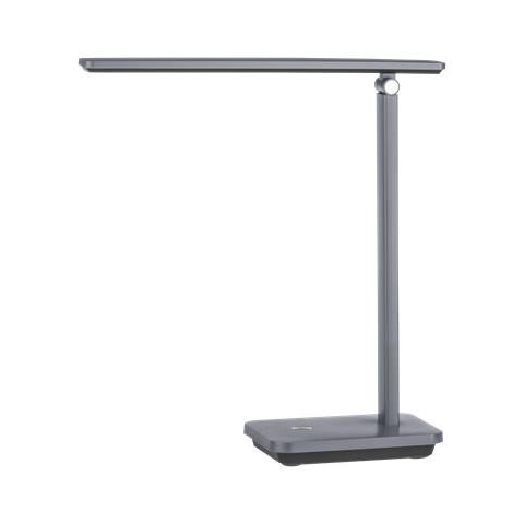 INIESTA LED asztali lámpa állítható lámpafejjel, tetszés szerint forgatható és dönthető. A lámpafej beépített LED izzókat tartalmaz szürke műanyag borítással, szabályozható fehér színű fénnyel. Érintéskapcsolóval és USB-porttal rendelkezik. - izzó fogl