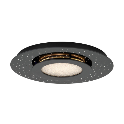 Az Azurekka Eglo 33711 távirányítós mennyezeti LED lámpa 24 W teljesítménnyel és 3100 lumen fényárammal biztosítja a melegfehér, 3000 K színhőmérsékletű világítást. A lámpatest design stílusú, fekete színű acélból és üveg kristályból készült, átmérője 500