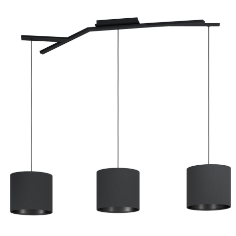 A Balnario Eglo 39886 függesztett lámpa három E27-es foglalattal rendelkezik, amelyek mindegyike cserélhető fényforrással szerelhető fel. A lámpatest fekete színű, acél és textil anyagok kombinációjából készült, így modern design jellemzi. A 1305 mm hossz
