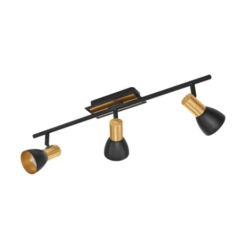 BARNHAM LED mennyezeti lámpa fekete lineáris fémtesttel és réz színű dekorlappal párosul. A három fekete spotlámpa réz színű végei tökéletes simítást adnak a dizájnnak. Az állítható árnyékolók réz belső felülettel is rendelkeznek, amelyek meleg fehér fény..