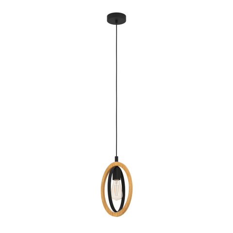 A Basildon Eglo 43461 függesztett lámpa egy vintage stílusú világítási megoldás, amely fekete és fa színkombinációval készül. Az acél és fa anyaghasználat modern, letisztult megjelenést biztosít. A lámpatest egy darab E27 foglalattal rendelkezik, amelybe