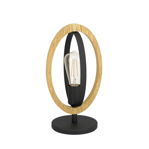 A BASILDON asztali lámpa ovális elemet tartalmaz, amely fából és fekete fémből készült. Az ovális elemek egymásba vannak rendezve, és a fény és az árnyék lenyűgöző játékát hozzák létre, amint a fény be van kapcsolva. A loft stílusú asztali lámpa zökkenőme..