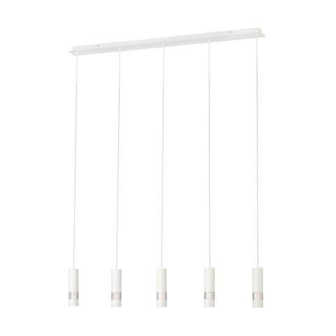A Bernabeta Eglo 39702 függesztett lámpa öt GU10 foglalattal rendelkezik, amelyekhez cserélhető fényforrások tartoznak. A lámpatest acél és műanyag kombinációjából készült, fehér-áttetsző színben, modern design stílusban. A termék teljes hossza 1165 mm, s