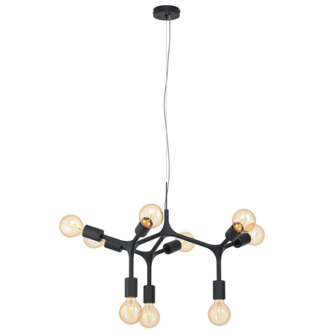 A Bocadella Eglo 98346 modern csillár kilenc E27-es foglalattal rendelkezik, amelyek cserélhető fényforrással szerelhetők fel. A lámpatest stílusos, design megjelenésű, fekete színű acélból készült, amely tartósságot és elegáns megjelenést biztosít. A csi