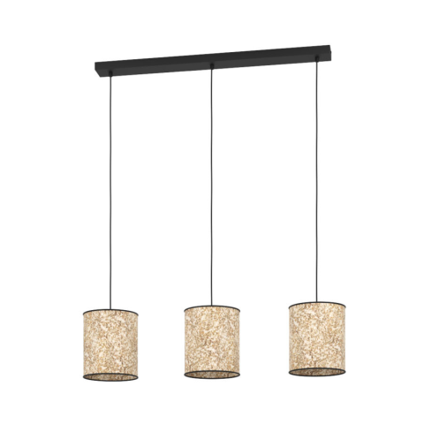 A Faleveles függesztett lámpa 3 foglalattal, Butterburn Eglo 43937 modell, egy modern lakásvilágítási megoldás, amely acél és textil anyaghasználatával, valamint fekete, bézs és zöld színkombinációjával illeszkedik különféle enteriőrökbe. A lámpatest háro