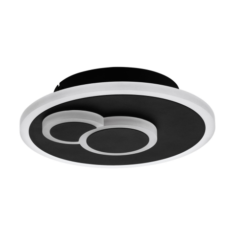 CADEGAL LED mennyezeti lámpa kerek fekete fém panellel rendelkezik, amelyet akril LED keret veszi körül. A design két kör alakú fémpanelt tartalmaz, amelyek a termék közepére vannak rögzítve megvilágított akril kerettel. Az integrált LED-ek rejtettek, és ..
