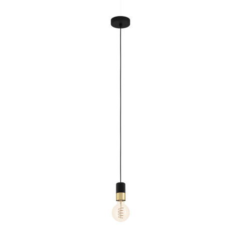 A Calari Eglo 31075 függesztett lámpa modern loft stílusban készült, fekete és sárgaréz színkombinációval. A lámpatest acélból készült, egy darab E27 foglalattal rendelkezik, amelybe cserélhető fényforrás helyezhető. A lámpa nem tartalmaz fényforrást, így