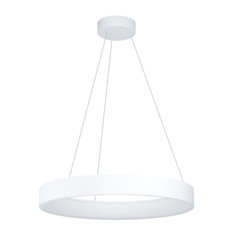A Campo Eglo 39688 szabályozható függesztett LED lámpa 34 W teljesítményű, integrált LED modullal rendelkezik, amely 4400 lumen fényáramot biztosít melegfehér (3000 K) színhőmérsékleten. A lámpatest minimál stílusban, fehér színben készül, anyaga acél és